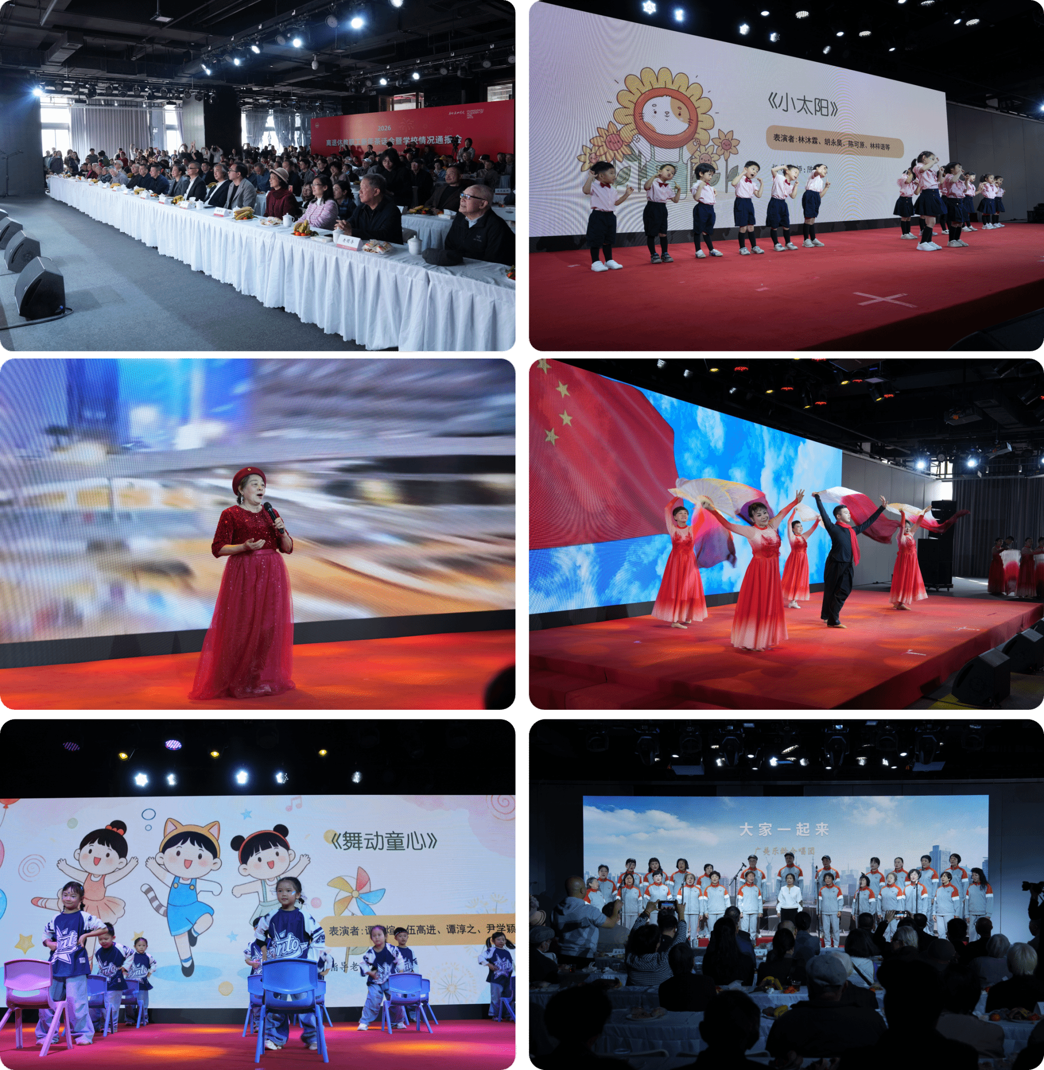 随后,离退办为大家精心准备了文艺演出,幼儿园小朋友带来节奏活泼、童趣满满的合唱《小太阳》与舞蹈《舞动童心》,何敏芝和舞蹈组分别用歌声和舞蹈演绎《我爱你中国》,共同表达了对祖国母亲深沉而炽热的爱,最后,“广美乐龄合唱团”带来了合唱《草原夜色美》、《大家一起来》,活动现场洋溢着欢快、热烈、喜庆的新春氛围。