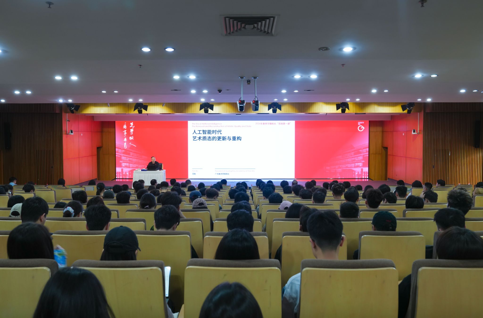 4月15日上午,广州美术学院院长范勃以“人工智能时代艺术质态的更新与重构”为题,在昌岗校区国际报告厅讲授2026年春季学期校长“思政第一课”。学校副院长李勇,相关职能部门负责人,马克思主义学院全体教师,研究生、城市学院学生代表等聆听学习。教务部部长涂渊主持。