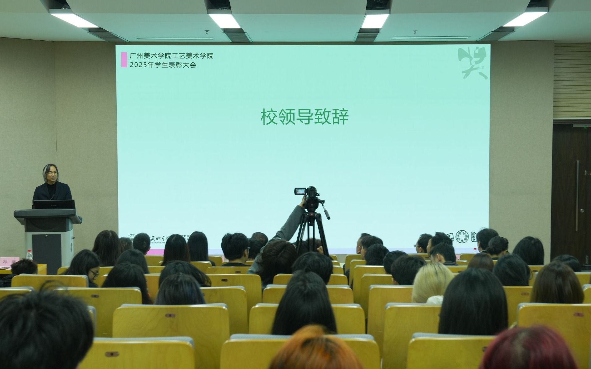 12月17日上午,工艺美术学院在大学城校区举行了2025年度学生表彰大会。广州美术学院副院长蔡拥华,宣传部部长、新闻中心主任罗培庆,教育发展与校友事务办公室主任刘滴,党委学生工作部部长、党委武装部部长孙凯军,校团委书记庄少琼,机关党总支书记兼党政办公室副主任罗春光,教育发展与校友事务办公室副主任陈聪,工艺美术学院党总支书记谭钊、院长齐喆及副院长庞国华,“高永坚艺术奖学金”“黄伟哲、区浩嘉奖学金”捐赠者区浩嘉、黄伟哲,“润泽漆艺奖助学金”捐赠者广东省润泽慈善基金会会长李润森、常务副会长胡康宁等嘉宾出席大会。工艺美术学院专职副书记王新宏主持。