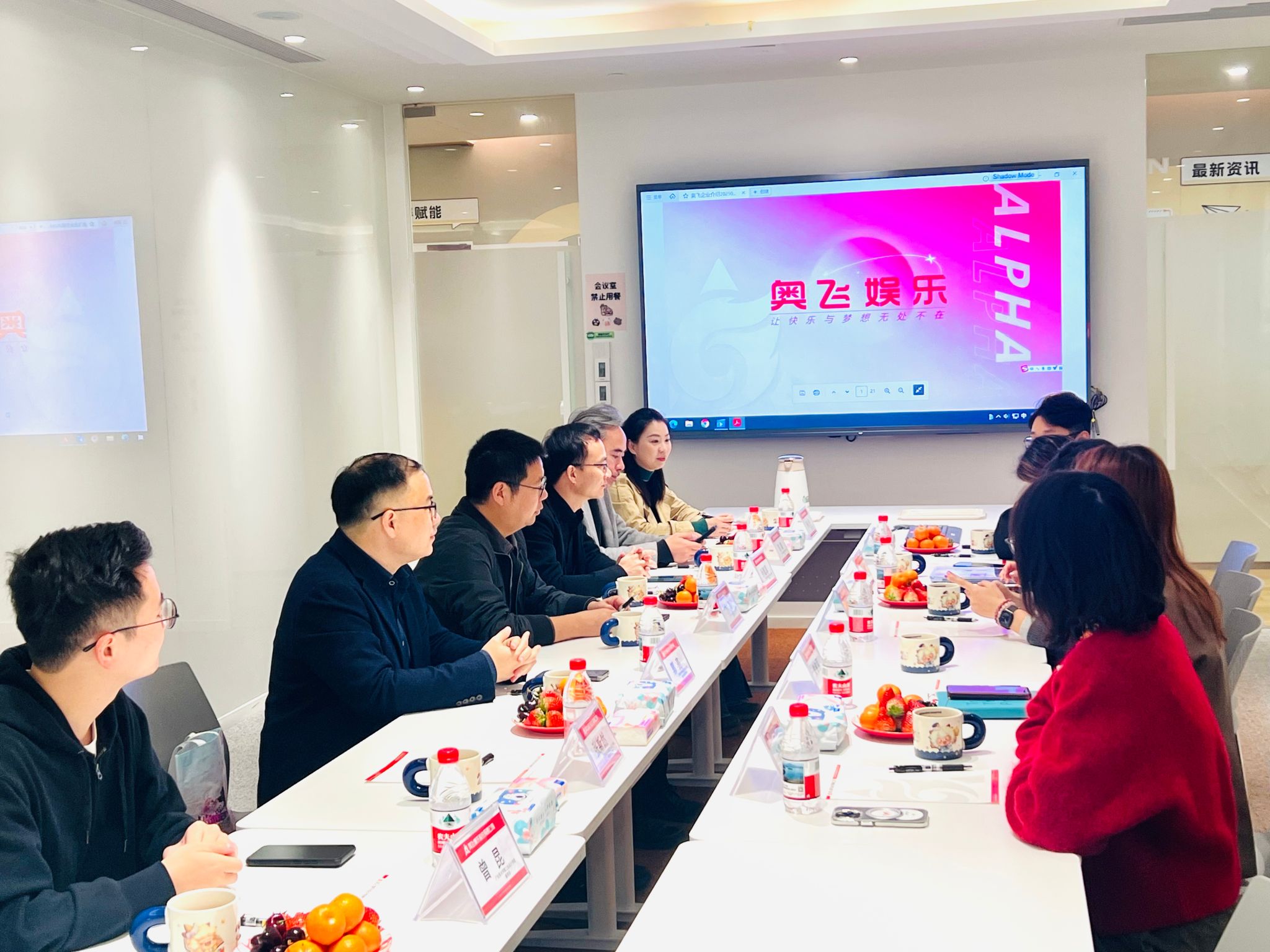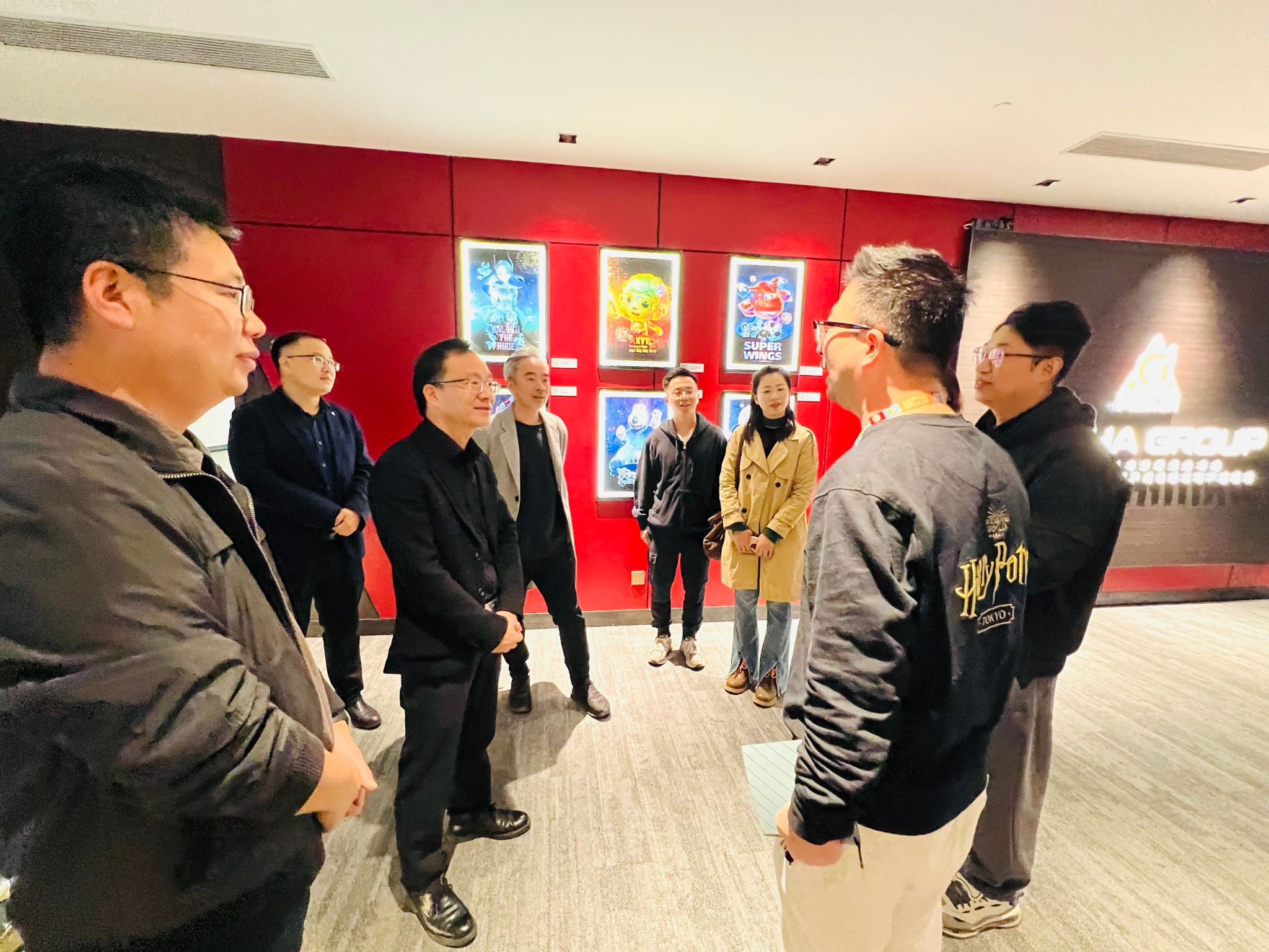 调研活动伊始,在奥飞娱乐副总裁萧凯力的引导下,孙凯军一行参观了奥飞文化长廊,近距离感受企业的品牌文化、IP创作理念及产业发展成果。随后的座谈交流中,双方围绕行业发展趋势、人才培养需求及校企合作新模式展开深入探讨。孙凯军表示,当前市场环境日新月异,AI技术的快速发展为文化创意产业带来了新的机遇与挑战,高校主动走出校园、对接企业需求已成为人才培养的关键举措。访企拓岗不是简单的供需对接,更是把企业最新的用人标准、职场能力要求精准带回学校,将产业一线的实践需求融入人才培养全过程。广美将以此次调研为契机,积极探索校企联合培养的体制机制创新,秉持"三全育人"理念,邀请企业行业专家走进课堂、参与课程设计和项目指导,让教学内容与产业需求同频共振,助力广美学子既夯实艺术专业功底,又提升适应职场的综合能力,实现高质量充分就业。