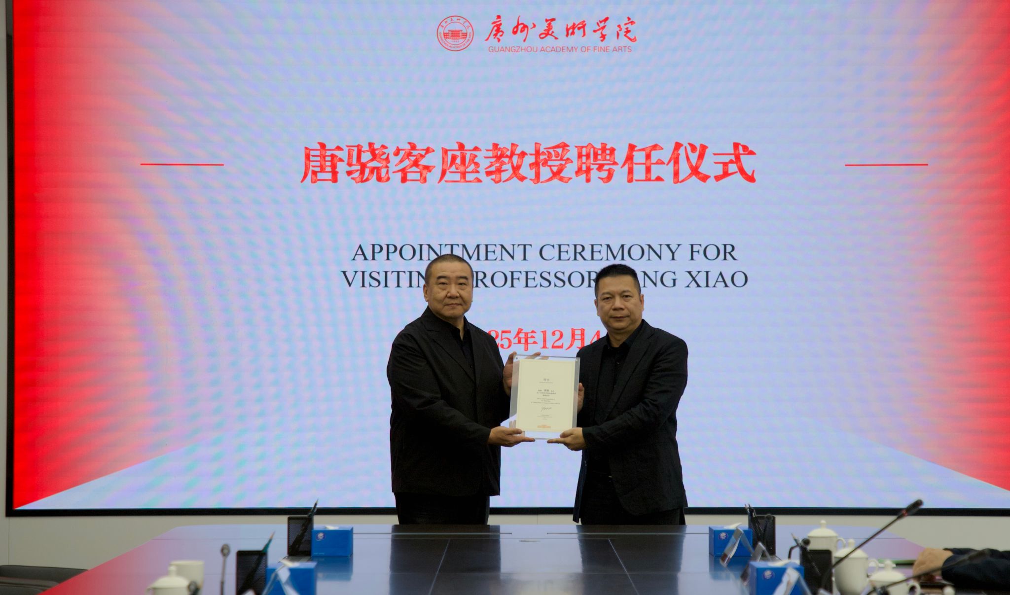 唐骁在致辞中感谢学校授予的荣誉与信任,他表示湖北美术学院与广州美术学院有深厚的交流基础,未来他将根据自身工作与创作经验的积累,结合区域艺术创新的活力,积极与广美师生开展深度对话与合作,在这个数字化的时代共同探索传统造型学科的更多可能,为广美高质量发展贡献绵薄之力。
