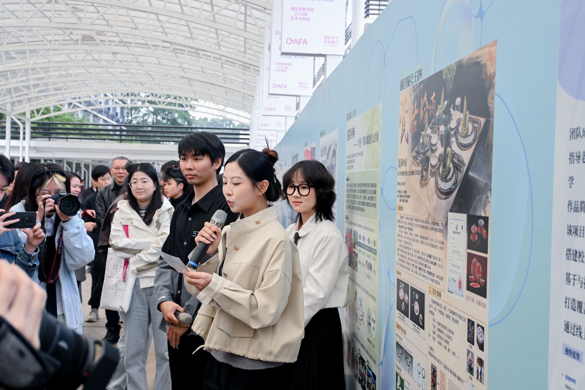 雕塑与公共艺术学院2024级公共艺术专业、“瓷话岭南”团队负责人李晓聪表示:“感谢学校搭建了这样一个宝贵的平台,让我能有机会与其他创业团队展开学习交流。参与挑战杯的经历,让我们团队更加坚定了以文化创新去服务社会与产业发展的初心。”