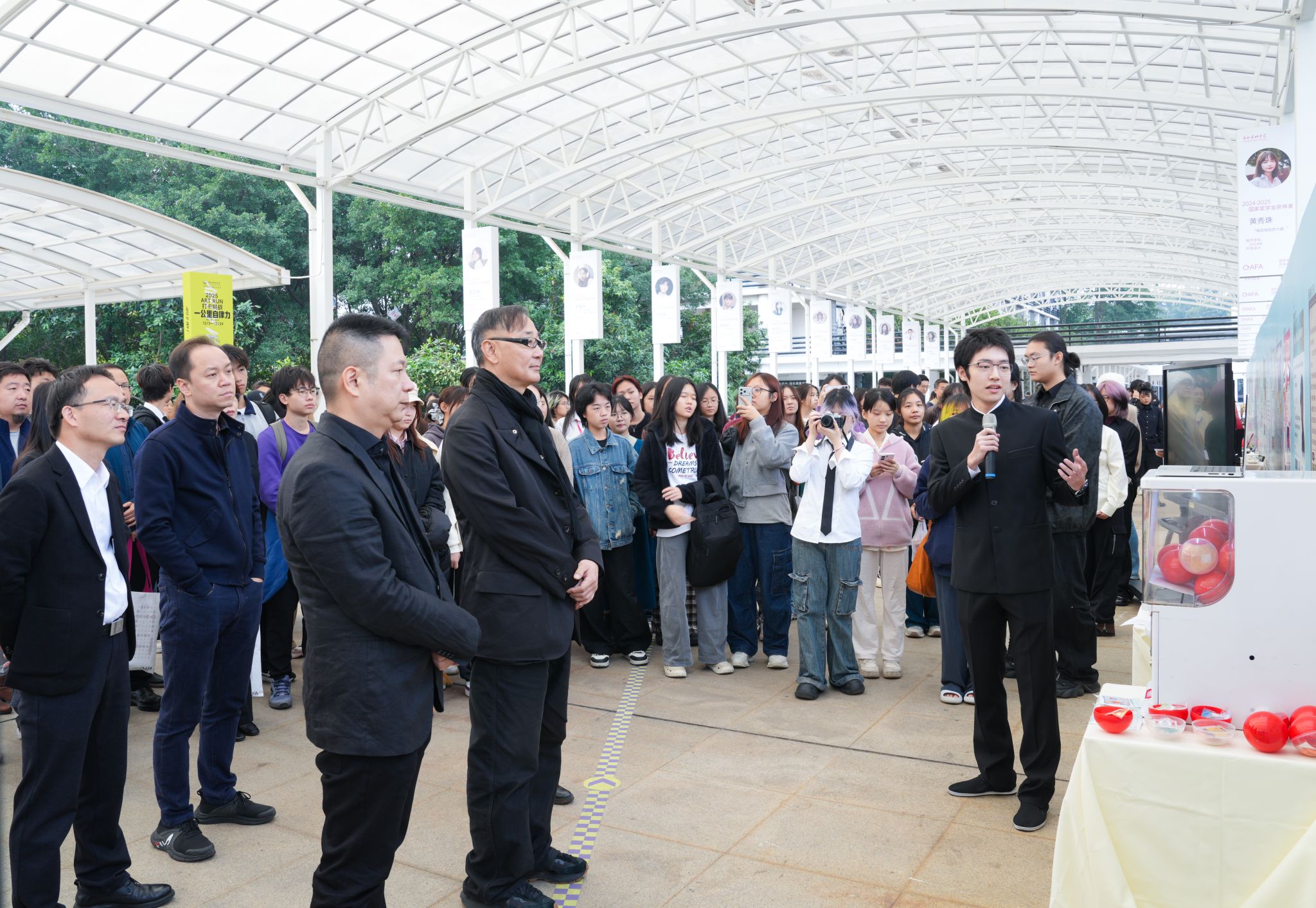 12月31日,校赛优秀项目展示交流活动在大学城校区举行,校赛金、银奖团队共15名广美青年”创客”集结,拿起“开放麦”,与师生分享自己的创业计划。广州美术学院院长范勃、党委副书记宋光智亲临活动现场,与同学们展开亲切交流。各相关部门和各二级学院负责人、师生代表参观了优秀作品展。