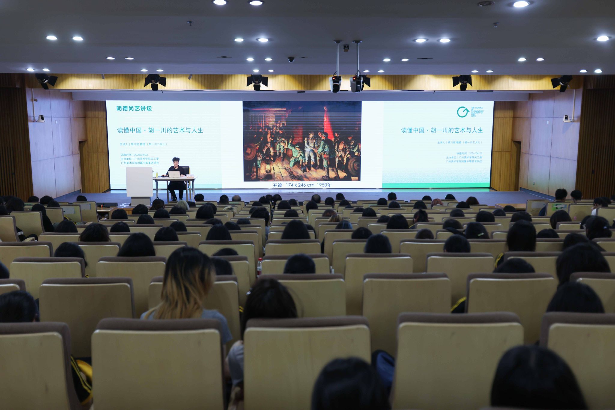 讲座在昌岗校区设计大楼二楼报告厅举行,现场座无虚席,气氛热烈。作为广州美术学院首任院长、著名革命美术家胡一川先生的女儿,胡川妮教授以其深厚的学术功底和独特的亲属视角,深情回顾了胡一川先生不平凡的艺术历程。